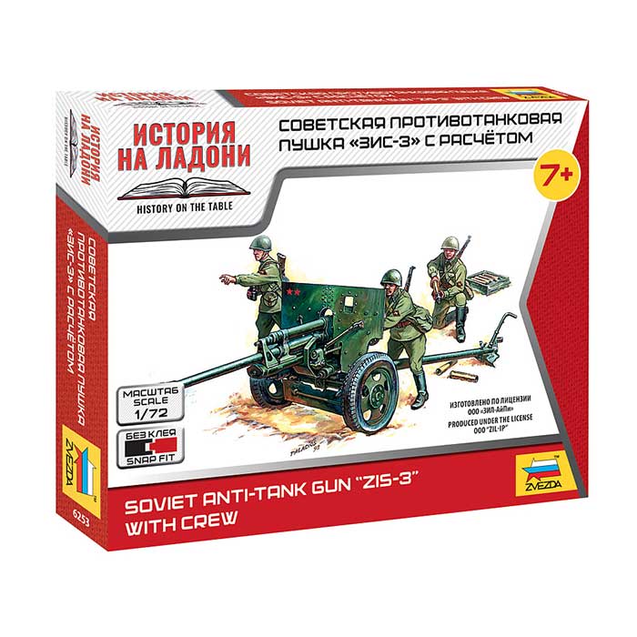 Историческая справка: 76-мм пушка была разработана в 1941 году. В феврале 1942 года пушка была официально принята на вооружение. в этом же году началось серийное производство этой пушки. Пушка ЗиС-3 была способна пробивать броню большинства образцов немецкой бронетехники.