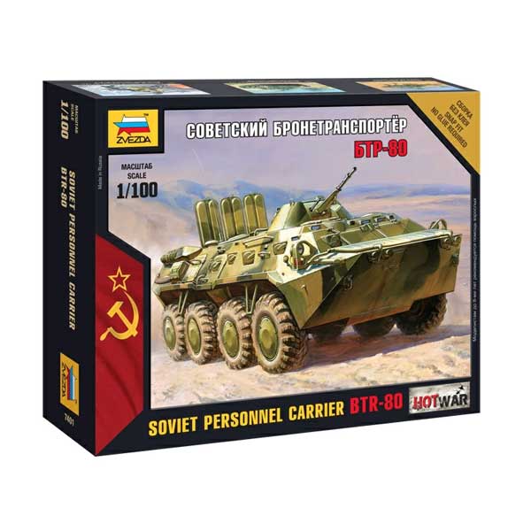 Историческая справка: БТР - 80 разработан и поступил на вооружение Советской армии в 1984 году. В машине были реализованы новые узлы и агрегаты, а также новые способы защиты, разработанные на афганском опыте. БТР -80 является универсальным средством доставки солдат к переднему краю. Не плохая защита, удобные бойницы для стрельбы из машины на ходу, а также умение плавать – делает его универсальной боевой машиной.