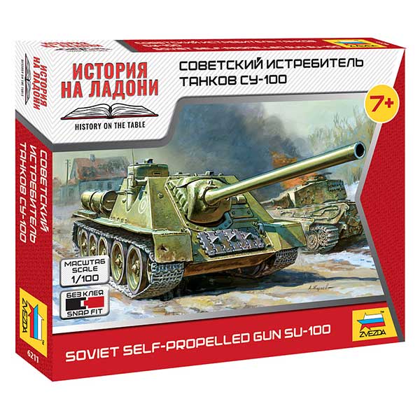 Историческая справка: Самоходно-артиллерийская установка СУ-100 была разработана в КБ Уралмашзавода на базе танка Т-34 в 1943 - начале 1944 года. Серийный выпуск новой самоходки был запущен в 1944 году в конце того же года она впервые попала на фронт. СУ-100 участвовали в сражениях завершающего периода Великой Отечественной войны.