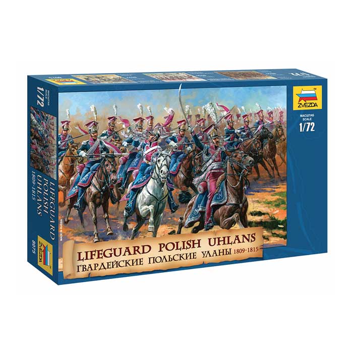 Уланы участвовали в походах в Испанию и Россию. Когда Наполеон был отстранен от власти и отправлен на о. Эльба, его также сопровождали 120 польских улан. В набор входит 18 неокрашенных конных солдатиков.