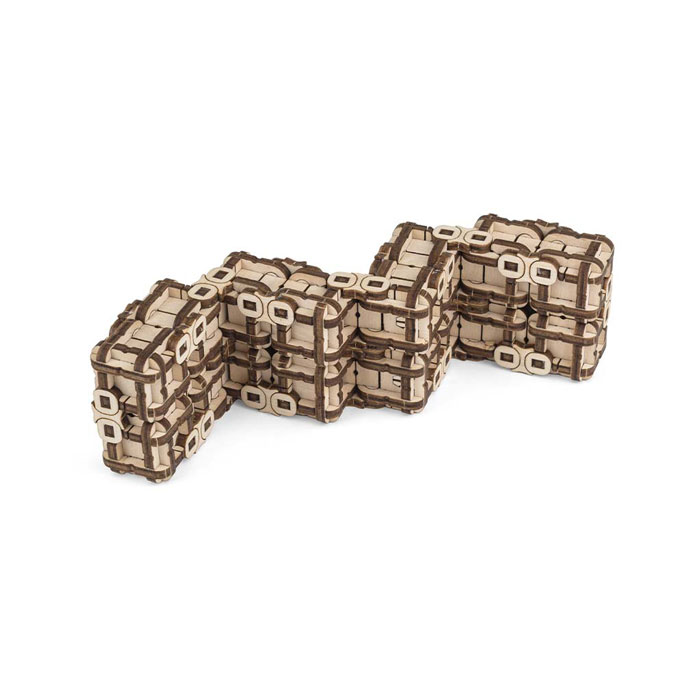 Метаморфик Змейка – это игрушка из фанеры, которую можно собрать самому. Она состоит из 16 одинаковых деревянных кубиков. Блоки соединяются друг с другом с помощью креплений, которые расположены в углах каждого куба.