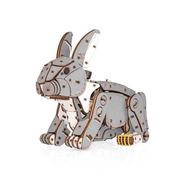 Деревянный механический конструктор Кролик — это увлекательная сборка и настоящее движение без батареек.