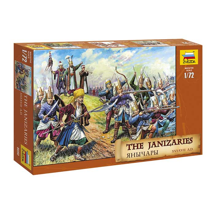 Набор фигурок элитных воинов Османской Империи. Янычары появились в 1365 году. Их набирали из христианских юношей 12-16лет (албанцы, болгары, сербы), обращенных в ислам. Они считались рабами султана, жили в монастырях-казармах, им первоначально запрещалось жениться и заниматься хозяйством. Помимо военного искусства, янычары изучали каллиграфию, право, теологию, литературу и языки. Янычары отличались особой жестокостью и бесстрашием в боях против австрийцев, сербов, византийцев, русских и многих других народов.