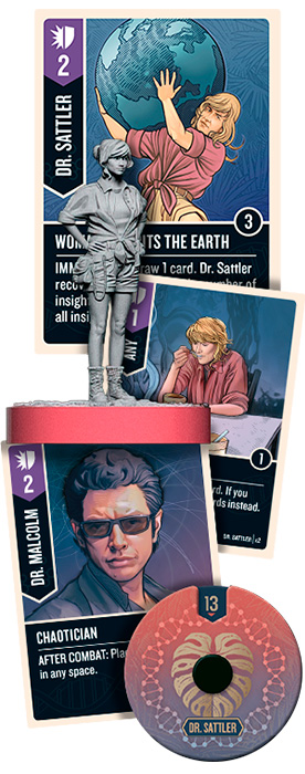 На помощь коллеге спешит и другой консультант Парка Юрского периода – доктор Ян Малкольм. Так же, как и Сэттлер, он сражается только в ближнем бою и может оставлять на поле жетоны наблюдения. В тандеме учёные изучают Парк особенно эффективно.