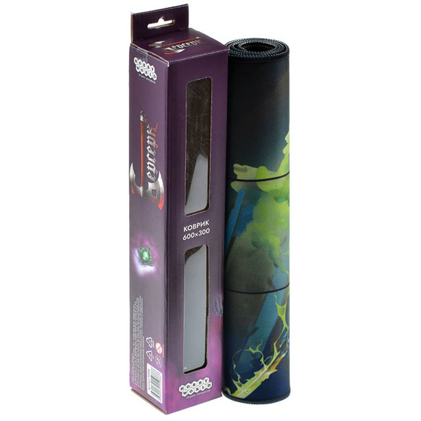 Внутри этой коробки вас ожидает полноразмерный неопреновый коврик, созданный специально для поединков в ККИ "Берсерк".