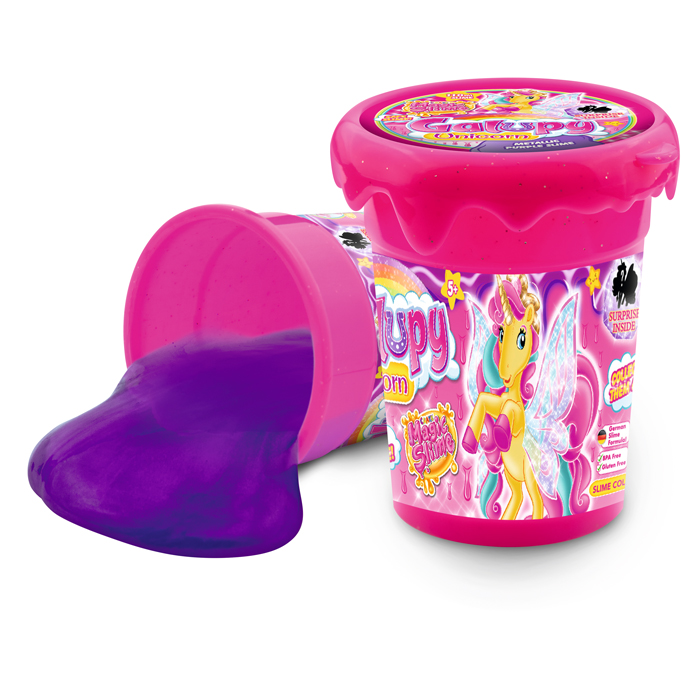 Внутри слайма вы найдете одну коллекционную игрушку в форме единорога из серии Galupy. Можно собрать коллекцию из 6-ти единорогов Galupy.