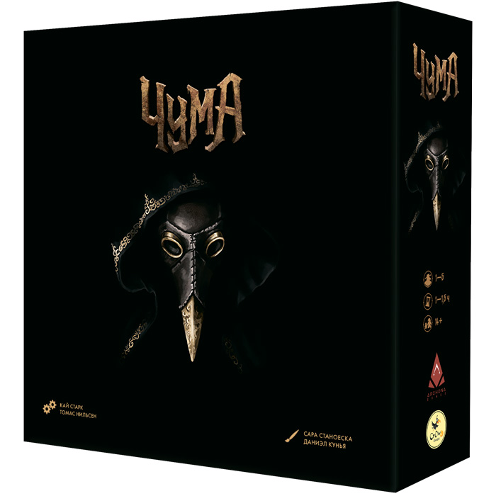 Мрачная, но атмосферная тема средневековой эпидемии интригует и позволяет погрузиться в события, довольно редко встречающиеся в настольных играх. Cтильное тёмное оформление сразу привлекает взгляд и выглядит очень эффектно!