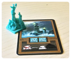 Для постройки требуется порт и храм. Раз в раунд во время вашего хода вы можете удалить одну из ваших флотилий с игрового поля, чтобы взять верхнюю карту из колоды мифических существ и воспользоваться её свойством.