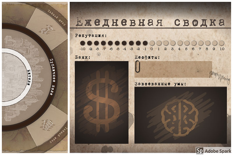 Основные события разворачиваются в "Публичном поле" города, однако скрытая часть подготовительной работы проходит в "Тайном штабе" каждого игрока.