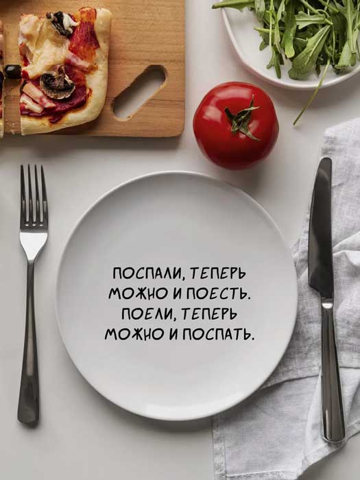 Прикольная тарелка с принтом "Поспали, теперь можно и поесть"
