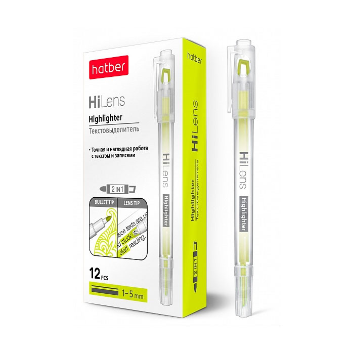 Текстовыделитель Hatber Hi-Lens Двухсторонний 1 mm / 5 mm, желтый