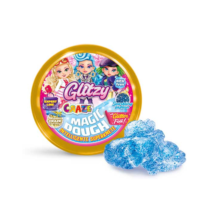 Тесто-пластилин попрыгунчик CRAZE Блеск, голубое-модный блеск, 70 г