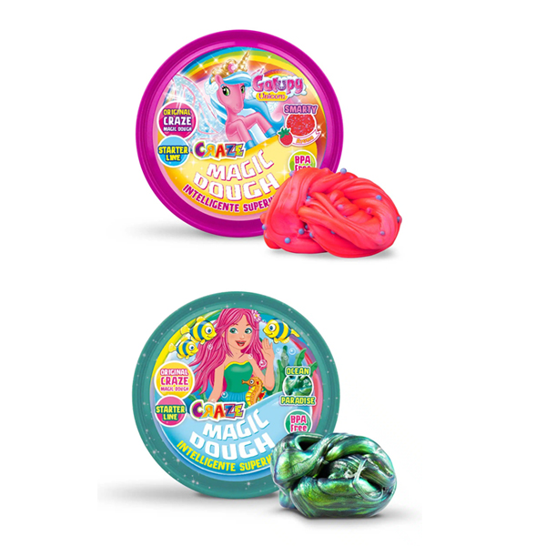 Умное тесто-попрыгунчик CRAZE Magic Dough – это новое творческое развлечение с забавными уникальными  свойствами! Оно очень эластичное и податливое, подпрыгивает, как надувной мячик, легко приобретает нужную вам форму, разбивается или ломается, затем легко восстанавливается. Такое умное тесто можно рвать, резать, скручивать. Все, как вы пожелаете! А теперь еще и в компактных баночках с  плотно закрывающейся крышкой, помещается, например, в любой карман брюк и идеально подходит для того, чтобы взять тесто с собой: будь то в школу, в парк или на встречу с друзьями. Тесто представлено в различных цветовых вариациях и со специальными эффектами. Оно может менять цвет, светиться в темноте, иметь эффект жидкого стекла. Обладает приятными ароматами  кокоса, клубники или вишни. Интеллектуальное тесто CRAZE Magic Dough способствует развитию координации, мелкой моторики и воображения. Игры с тестом CRAZE не только полезны, но и увлекательны.
