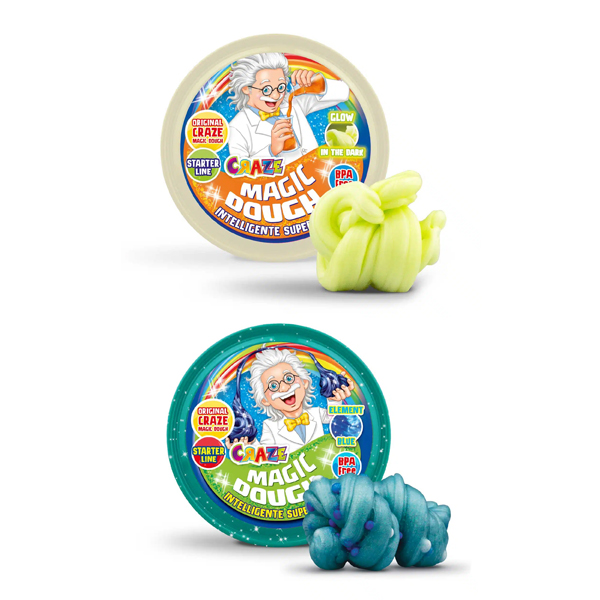Умное тесто-попрыгунчик CRAZE Magic Dough – это новое творческое развлечение с забавными уникальными  свойствами! Оно очень эластичное и податливое, подпрыгивает, как надувной мячик, легко приобретает нужную вам форму, разбивается или ломается, затем легко восстанавливается. Такое умное тесто можно рвать, резать, скручивать. Все, как вы пожелаете! А теперь еще и в компактных баночках с  плотно закрывающейся крышкой, помещается, например, в любой карман брюк и идеально подходит для того, чтобы взять тесто с собой: будь то в школу, в парк или на встречу с друзьями. Тесто представлено в различных цветовых вариациях и со специальными эффектами. Оно может менять цвет, светиться в темноте, иметь эффект жидкого стекла. Обладает приятными ароматами  кокоса, клубники или вишни. Интеллектуальное тесто CRAZE Magic Dough способствует развитию координации, мелкой моторики и воображения. Игры с тестом CRAZE не только полезны, но и увлекательны.