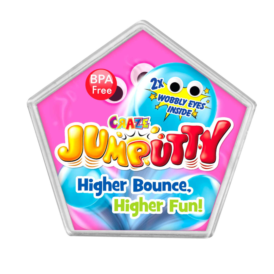 CRAZE JUMPUTTY идеально подходит для создания собственного мячика-попрыгунчика и никогда не высыхает. После броска тесто сильно подпрыгивает – будьте осторожны! При помощи стены с таким тестом-попрыгунчиком можно отрабатывать удары как в настоящем спортивном поединке. Если вы оставите CRAZE JUMPUTTY в нажатом состоянии, тесто будет принимать форму очень медленно и, в сочетании с двумя подвижными глазками, будет создавать забавные формы. Такое веселье не оставит равнодушным ни одного малыша и не позволит вам скучать.