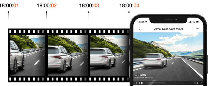 70mai Dash Cam M300 поддерживает непрерывную запись видео со скоростью 1 кадр/с в режиме парковки. Видеорегистратор сжимает каждые 30 минут видео в 1 минуту, чтобы сэкономить место на карте памяти и обеспечить более быстрое воспроизведение. вы сможете мгновенно отслеживать важные события. С помощью данной функции вы сможете запечатлеть красочный закат.