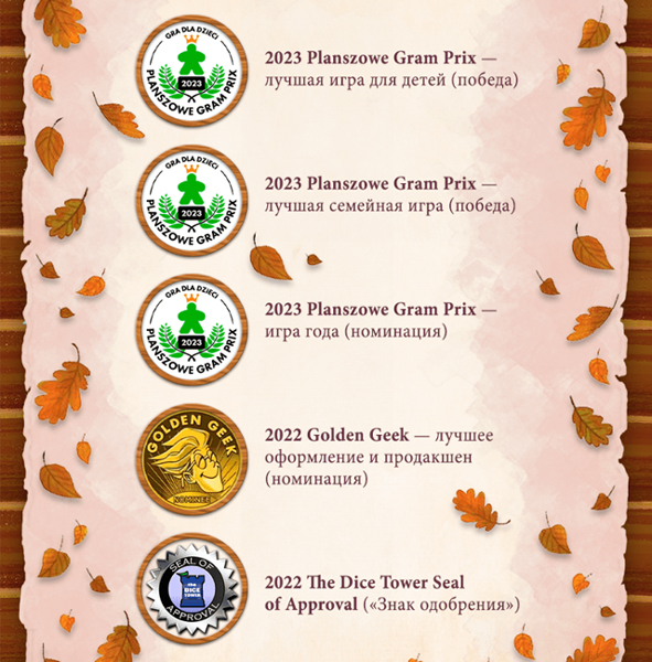 В «Уютной опушке» вы играете за семью лесных зверушек, которым нужно подготовиться к грядущей зиме. Это игра с необычным сочетанием механик размещения и активации рабочих: вы сначала назначаете рабочих на определённые действия, а затем активируете их при помощи кубиков.