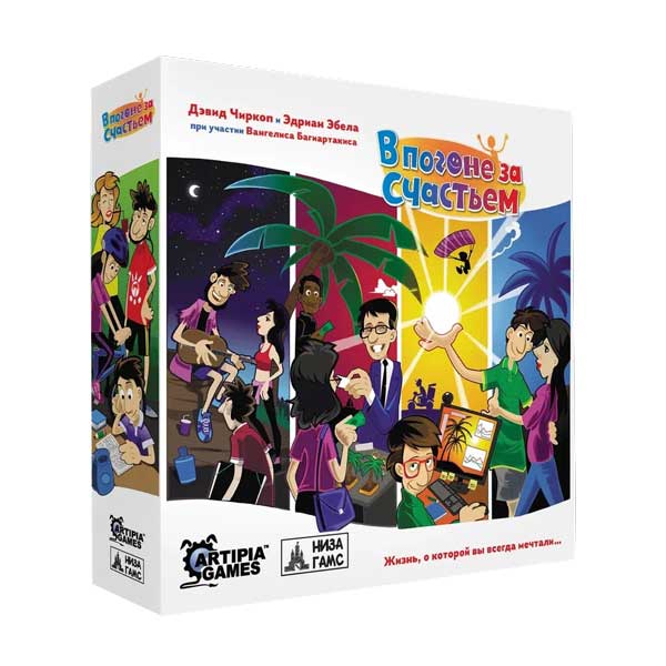 «В Погоне за Счастьем» – это настольная игра, в которой вы берёте под свою опеку персонажа с самого рождения и проживаете его жизнь так, как вы об этом мечтали. Используя механику перемещения работников и время, вам предстоит заниматься различными проектами, получать работу, приобретать предметы, завязывать отношения, воспитывать детей и заниматься семьёй. Возможности безграничны, ведь вы живёте жизнью, о которой всегда мечтали. Как многого вы сможете достичь всего за одну жизнь?