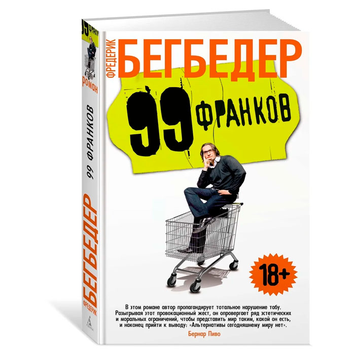 Книга «99 франков» Фредерика Бегбедера представляет собой остроумную сатиру на рекламный бизнес, дерзкое разоблачение безумного и полного превратностей мира, в котором все презирают друг друга, где бездарно растрачиваются человеческие ресурсы... Роман Бегбедера провокационен, написан в духе времени и весьма полемичен. В свое время он стал настоящим событием литературного сезона, а его автор, уволенный накануне публикации из рекламного агентства, покинул мир рекламы, чтобы немедленно войти в мир бестселлеров.