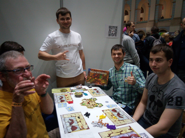 В 2017 году на фестивале настольных игр «ИГРОКОН» в Москве, я опробовал много игр, но очень понравились только две. Одна из этих игр «Марш Муравьев» от авторов Райан Свишер и Тим Айснер. На стенде издательства «Лига Партизан» руководитель проекта по локализации игры Илья Степанов с большим энтузиазмом представлял игру. Не смотря на то, что это был уже второй день, и я был довольно уставший, Илье удалось привлечь мое внимание, и я сел поиграть в неё. К слову сказать, я давно искал стратегическую игру про развитие цивилизации, но чтобы длительность ее не превышала одного часа. И я был уверен, что такую игру невозможно найти. Но мое мнение изменилось после знакомства с «Маршем Муравьев». Это конечно не полноценная цивилизация, но… Расскажу, чем меня зацепила игра после первой партии. В игре есть развитие планшета, есть развивающееся поле-муравейник, есть фаза производства и потребления, есть военный конфликт, можно разыгрывать карты целей, время партии около 1 часа, несколько режимов игры (обычный, продвинутый, кооперативный и соло режим), во время хода других игроков вы выполняете пассивные действия и поэтому нет провисаний в игре. И как раз, к моему дню рождения эта игра появилась на полках магазина, а после и в моей домашней коллекции.