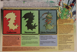 А на обратной стороне одного из пяти планшетов изображено гнездо многоножки. Этот планшет используется для игры в соло и кооперативном режимах, для выполнения действий многоножки с которой предстоит бороться муравьям.